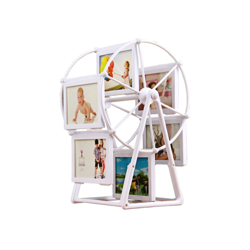 The Ferris wheel photo frame is a unique and creative frame designed for those who love innovative designs. Inspired by the shape of a Ferris wheel, this frame can display multiple photos, presenting your precious memories in a fresh way. Whether placed in the living room, bedroom, or office, the Ferris wheel photo frame serves as an eye-catching decorative piece, adding fun and artistic flair to your space.